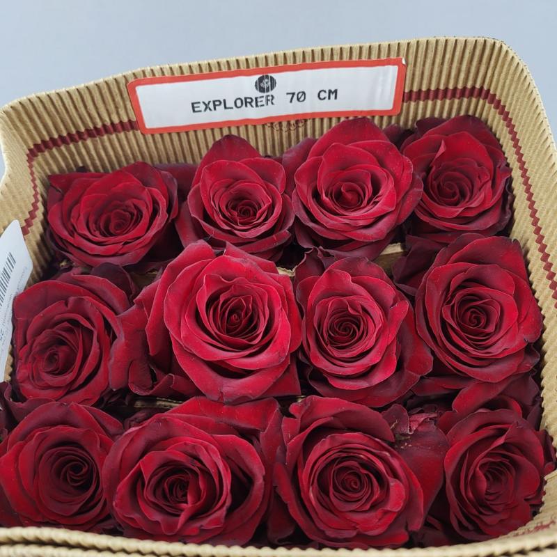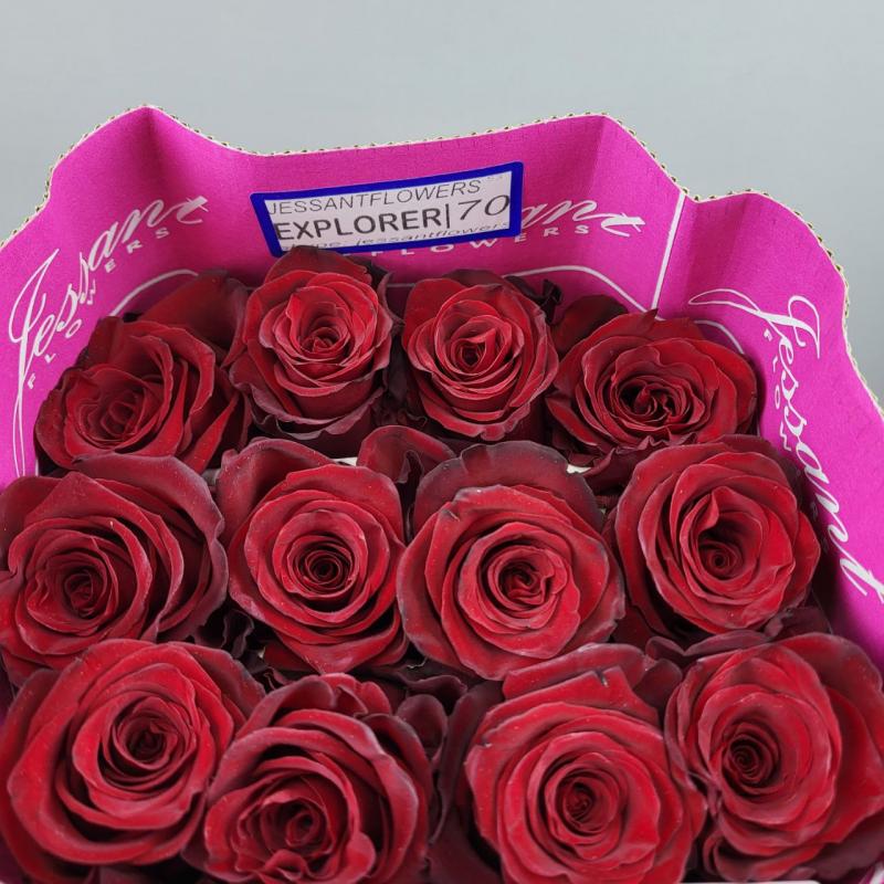 Яркий представитель красных роз. Роза сорта Эксплорэр имет очень плотный бутон и отличается повышенной стойкость после среза. Очень популярный и востребованный сорт. Доставка роз по Харькову и области.