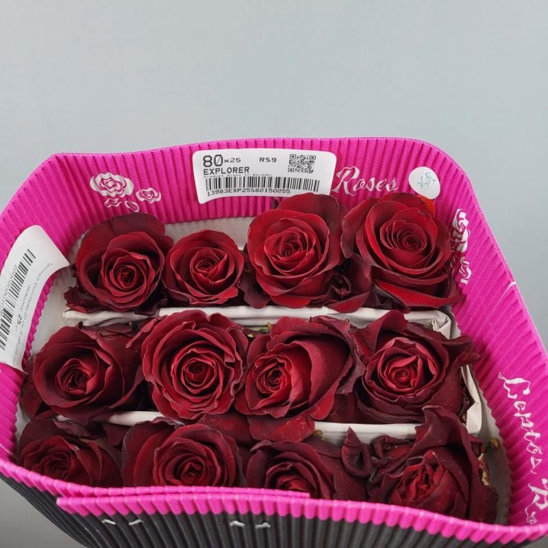Яркий представитель красных роз. Роза сорта Эксплорэр имет очень плотный бутон и отличается повышенной стойкость после среза. Очень популярный и востребованный сорт. Доставка роз по Харькову и области.